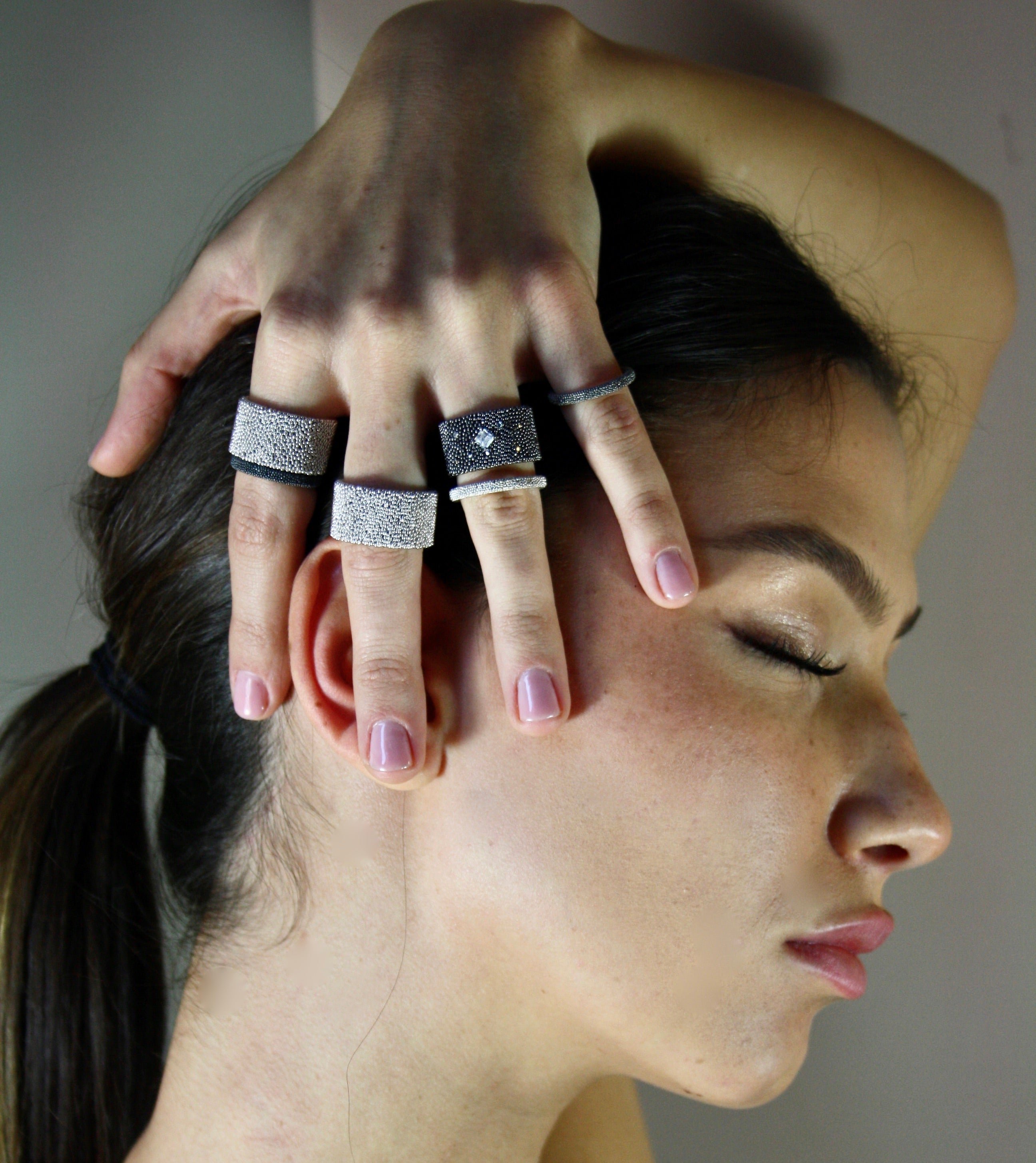 Bold ed eleganti, realizzati con la lavorazione esclusiva delle micro-gemme di bronzo. Ogni fascia è unica, riconoscibile e pensata per chi ama gioielli dal carattere deciso.